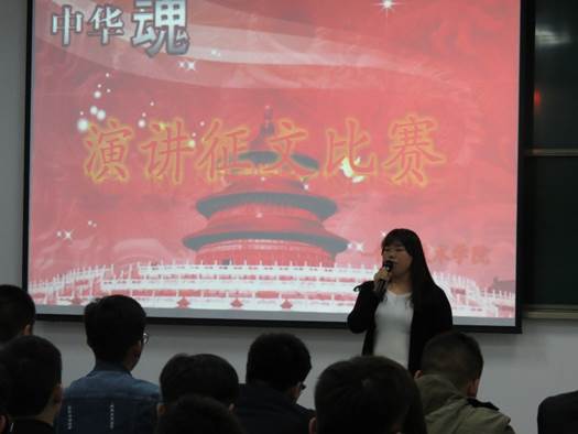 首先黄品尧和徐杏杏两位主持人,用一句中华之魂的演讲词,把比赛引入了小高潮,随后比赛中,选手们又以热情饱满的精神面貌、铿锵有力的铮铮誓言,真情地讲述了一个个感人至深的故事,把比赛推向了制高点,为了表达了一份份真挚热烈的爱国主义情感,各位选手竭尽其能,整场比赛高潮迭起,掌声雷动,紧张有序。评委们根据选手的演讲内容、语言表达、形象表现等方面进行了认真评判,现场打分。经过激烈角逐,共评出一等奖二名,二等奖四名,三等奖六名,优秀奖若干。