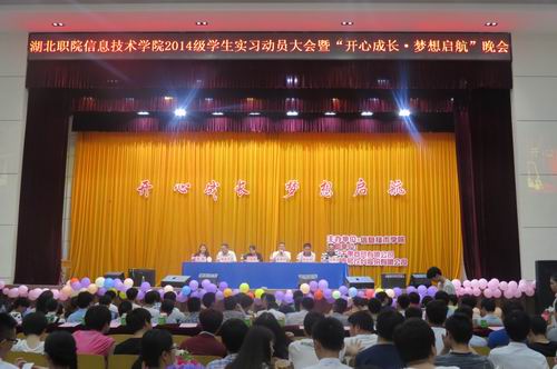 5月31日晚,信息技术学院在西区大礼堂举行了2014级学生实习动员大会暨“开心成长 梦想启航”晚会。学校学工处负责人、信息技术学院负责人、全体班主任和2014级教师、2014级全体学生、2015级全体学生参加了晚会,并观看了精彩文艺节目。