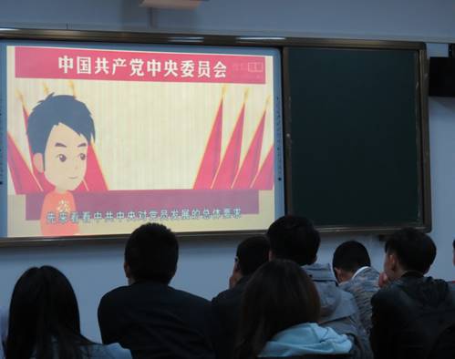 首先,李来斯老师提出了“你们对党有什么认识吗?”这一问题,望同学们能够给出一些答案。于是,同学们便就这一问题展开了讨论。随后,李老师播放了视频资料给了我们一个初步的认识,接下来将近一个多小时则对入党的要求、党的性质党的思想等等做出了生动而具体的讲述。