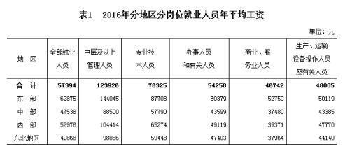 2016年分地区分岗位就业人员年平均工资。来自国家统计局