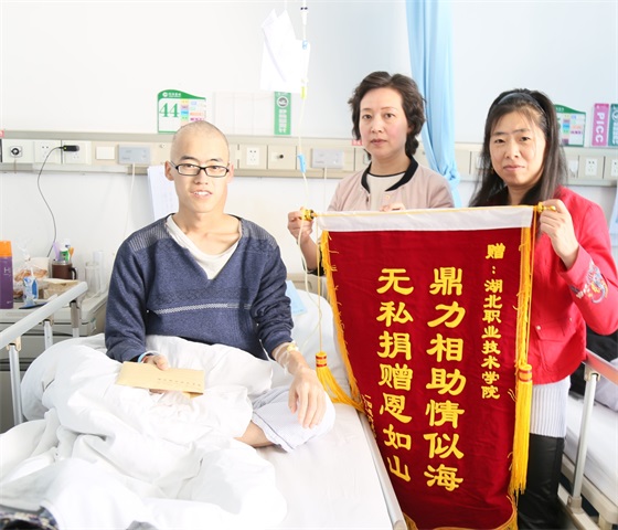 在学工部、信息技术学院的组织下,学校再次向信息技术学院患重病学生向小勇进行了募捐。4月28日,学校学工部、信息技术学院相关同志再次来到向小勇同学的病床前,送来了凝聚母校师生爱心的又一次募捐款、爱心资助款、学费减免款合计8000元。学工部副处长邹雪萍代表学校表达了对向小勇一家的深切慰问,希望爱在小勇的生命中延续,同时勉励向小勇同学积极克服困难,战胜病魔,早日康复。
