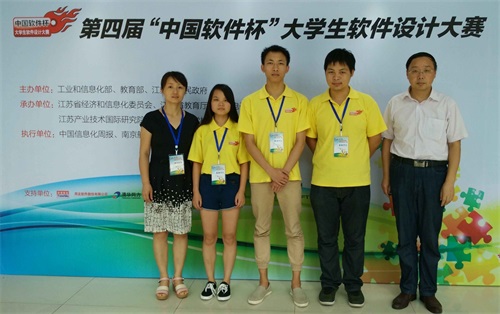 本届大赛是信息技术学院第一次选派学生参加,得到了学校高度重视,并且学校教务处等有关部门给予了大力支持。自接到参赛通知以来,信息技术学院积极组织挑选优秀学生,认真备赛,2015年5月初组建了两支参赛队伍迅速投入到紧张的训练之中,参赛成员分别是2013级的雷焱森、张汉林、杨咪、夏盛、魏闯、祝业雄六名同学。以李岚、胡昌杰为首的参赛指导教师对赛题进行细致推敲、分析,指导学生进行项目架构、框架设计;参赛队员不分昼夜,赶写代码,调试软件。在7月初公布的决赛名单中,两支队伍不负众望,从全国31个省市及地区的2518支参赛队伍中脱颖而出,顺利晋级有189支队伍角逐的决赛。
