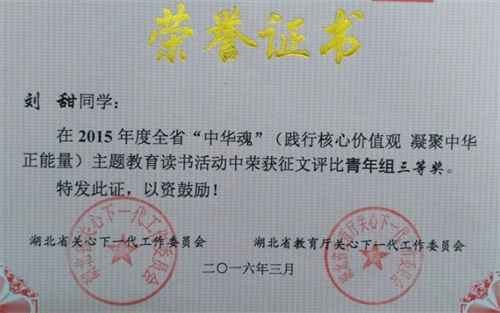 我校学子在2015年度湖北省“中华魂”主题教育读书活动中喜获佳绩