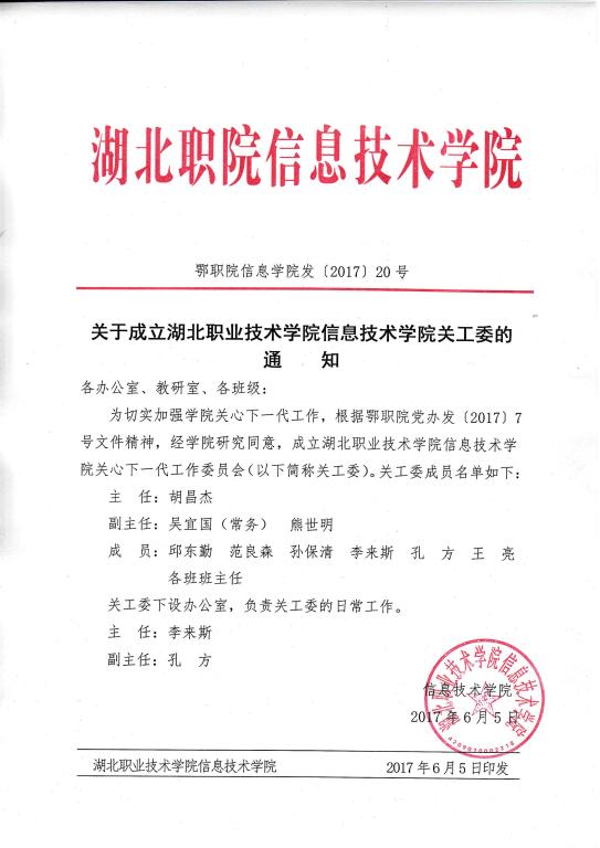 关于成立湖北职业技术学院信息技术学院关工委的通知